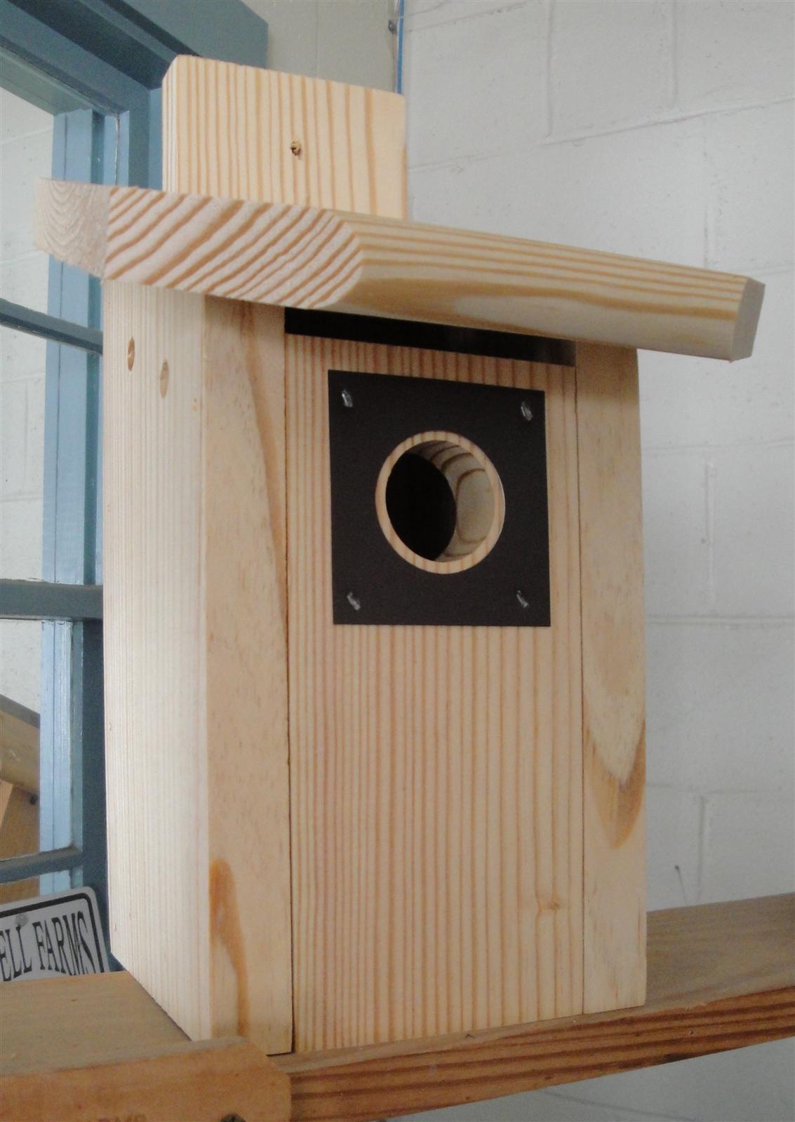 Our bluebird houses are constructed by volunteer craftsmen at our factory in Warrenton, North Carolina. Through many years of constant field research we have developed what we believe to be the world's best bluebird house. We have studied many types of bird houses and have combined the best qualities of each into our houses. They are constructed from western heart pine or cypress and will last for many years. These homes feature a predator door guard, hinged door, and grooves to help the chicks emerge when the time comes.